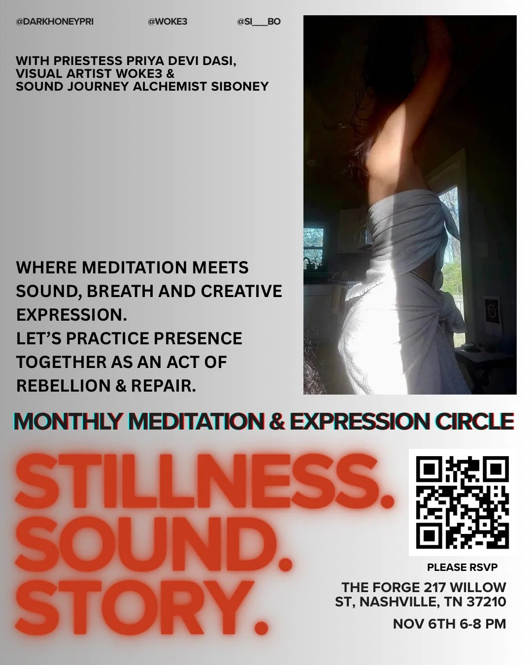 Where meditation meets sound, breath and creative expression. Let’s practice presence together as an act of rebellion & repair